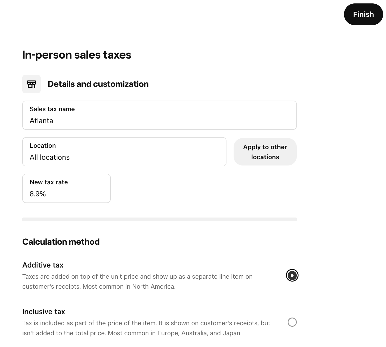 Congratulations! 🥳 You've successfully created sales tax rates for in-person sales on Square.